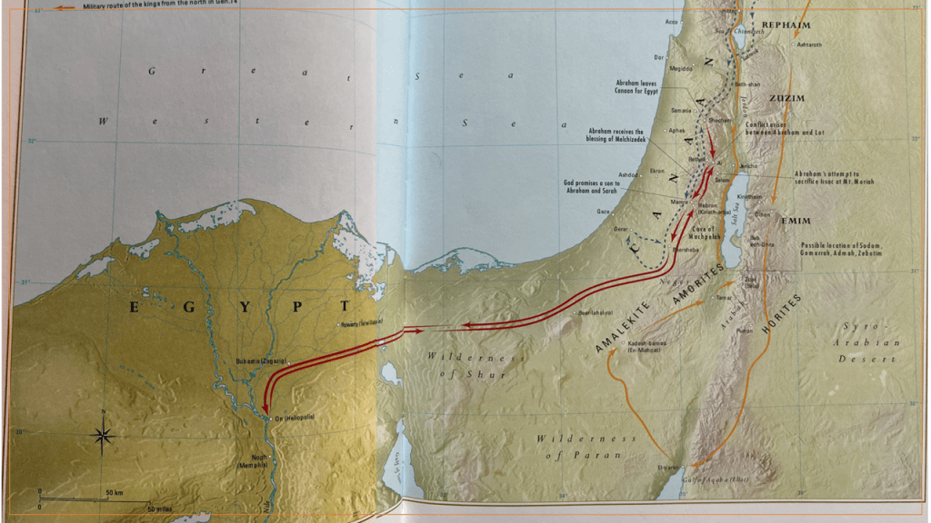 A certa altura, Sara e Abraão peregrinaram no Egito devido à fome em Canaã. Isto os colocaria na parte nordeste do atual Egito.